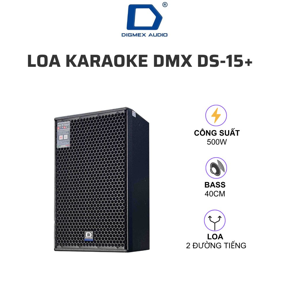 Loa karaoke DMX DS-15+ với công suất 500W thích hợp sử dụng cho hát karaoke chuyên nghiệp, phòng hát gia đình cao cấp, đáp ứng mọi nhu cầu giải trí và thưởng thức âm nhạc hiện đại.