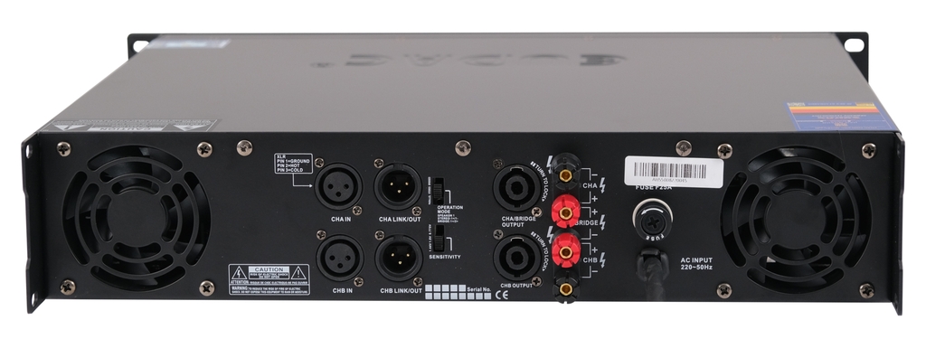 Mặt sau với hệ thống cổng kết nối được bố trí khoa học, ký hiệu một cách chi tiết giúp người dùng có thể kết nối dễ dàng với các thiết bị khác. Cục đẩy công suất EUDAC AH-550 được trang bị hệ thống quạt làm mát thông gió giúp cho thiết bị hoạt động ổn định dù hoạt động trong thời gian dài mà không bị nóng máy, bảo vệ các linh kiện bên trong.