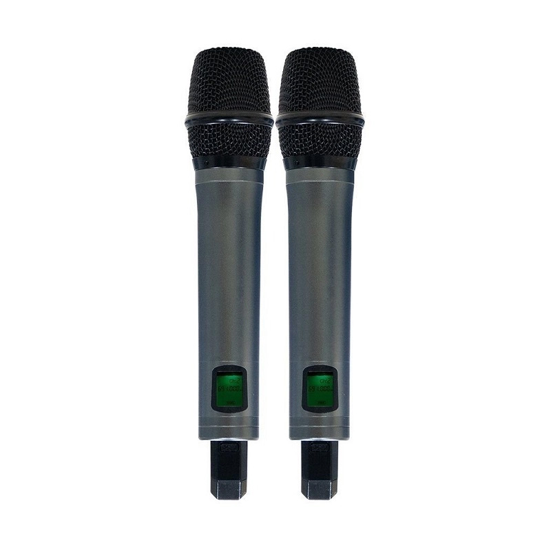 Loa đi kèm với 2 mic không dây UHF cao cấp, cho khả năng thu âm tốt và chất lượng giọng hát trung thực. Mic nhẹ, dễ cầm, và độ nhạy cao giúp người dùng dễ dàng kiểm soát giọng hát khi hát karaoke.