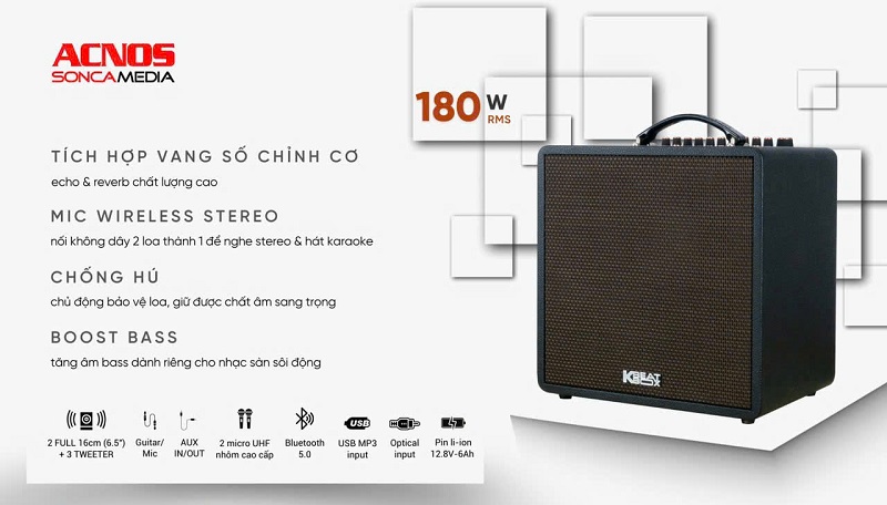 Loa karaoke di động ACNOS QUAD 64 không chỉ sở hữu âm thanh chất lượng cao mà còn được trang bị đầy đủ các cổng kết nối, biến nó trở thành trung tâm giải trí đa năng, đáp ứng mọi nhu cầu nghe nhạc và ca hát của bạn.