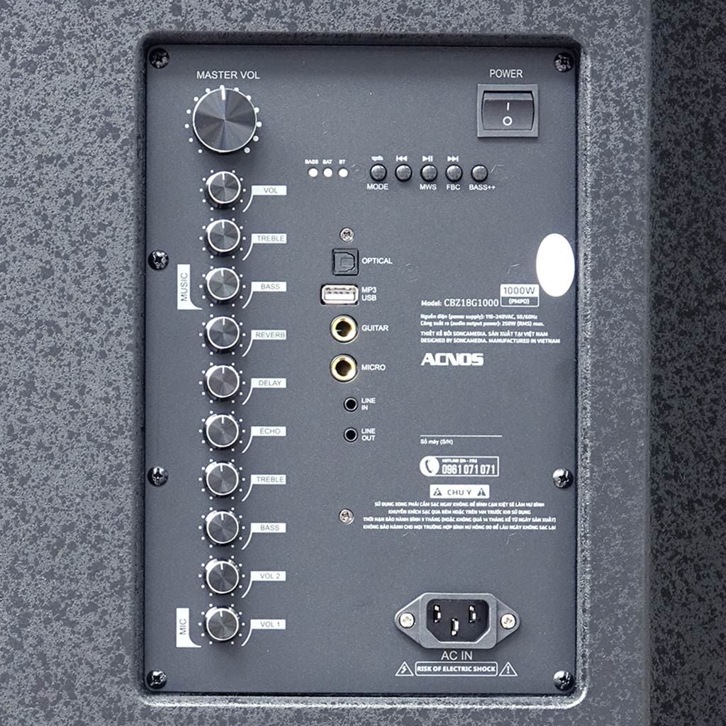 Dàn karaoke di động ACNOS CB51neo được thiết kế Thùng gỗ sơn gai màu đen, mặt lưới đen gắn kèm bánh xe dễ dàng di chuyển. Hệ thống loa bao gồm 1-loa BASS 50CM (18") + 1-loa TRUNG 16CM (6.5") + loa TREBLE cho âm thanh mạnh mẽ, dải âm nghe rõ nét hơn, trầm ấm phù hợp với không gian tiệc trong nhà, sân vườn hoặc các buổi dã ngoại, team building ngoài trời. Loa karaoke CB51neo có công suất RMS 250W tương đương công suất âm thanh PMPO lên đến 1000W. Micro nhôm UHF cao cấp không dây nhẹ hơi, nâng giọng hát karaoke chuyên nghiệp.
