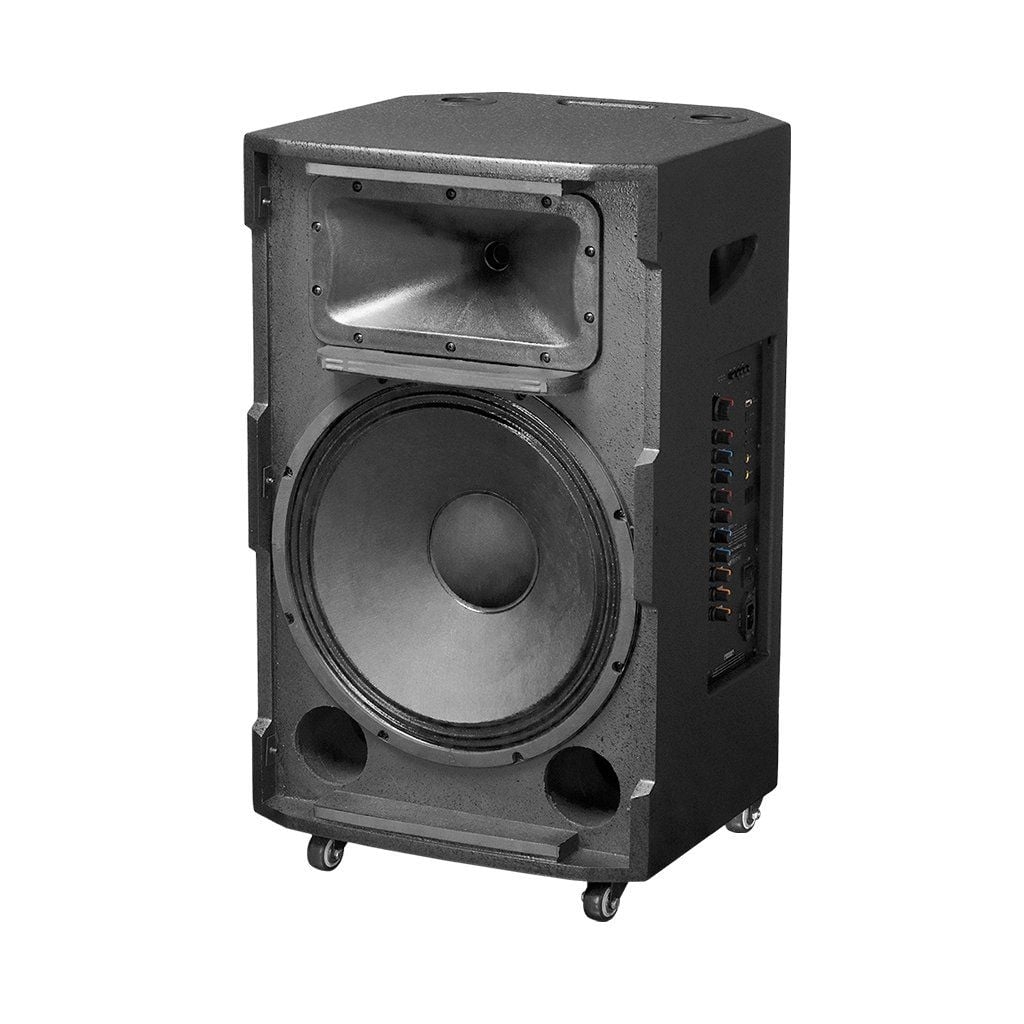 Dàn karaoke di động SONCAMEDIA CB393neo được thiết kế thùng gỗ sơn màu đen, mặt lưới đen gắn kèm bánh xe dễ dàng di chuyển. Hệ thống loa bao gồm: loa Bass 4 tấc (40cm) và loa treble cho âm thanh mạnh mẽ, trầm ấm. Công suất ra RMS 150W, công suất PMPO lên đến 750W. Micro UHF vỏ nhôm cao cấp không dây nhẹ hơi, nâng giọng hát karaoke chuyên nghiệp. SONCAMEDIA CB393neo tích hợp Bluetooth 5.0 giúp kết nối các thiết bị di động nhanh hơn, tiết kiệm năng lượng, tăng phạm vi kết nối và truyền dữ liệu nhanh hơn.