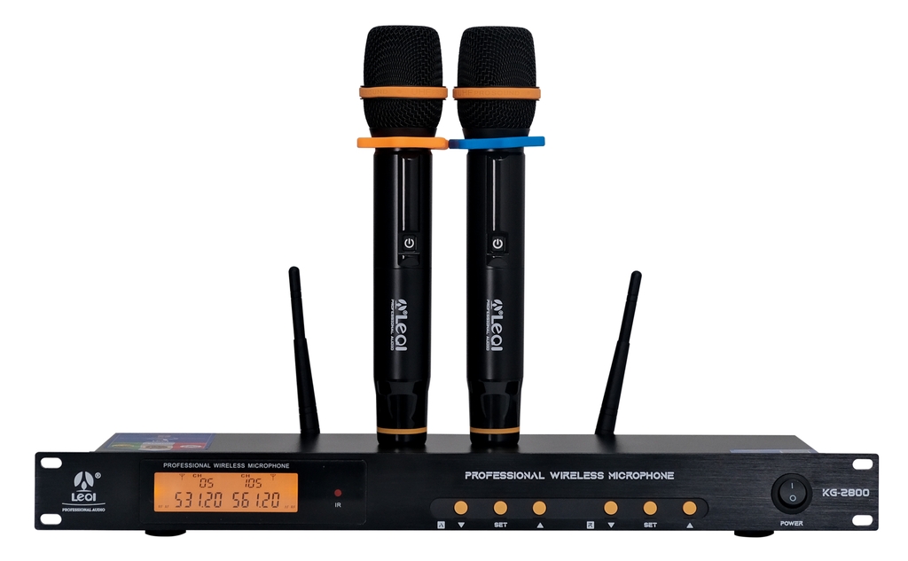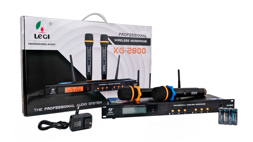 Micro LEQI KG-2800 mang phong cách thiết kế hiện đại và chuyên nghiệp, với gam màu đen nhám chủ đạo tạo cảm giác sang trọng và mạnh mẽ. Bộ sản phẩm bao gồm 2 tay micro cầm tay cùng đầu thu sóng dạng tủ rack tiêu chuẩn, phù hợp để lắp đặt trong các hệ thống âm thanh sân khấu, hội trường hay karaoke kinh doanh cao cấp.