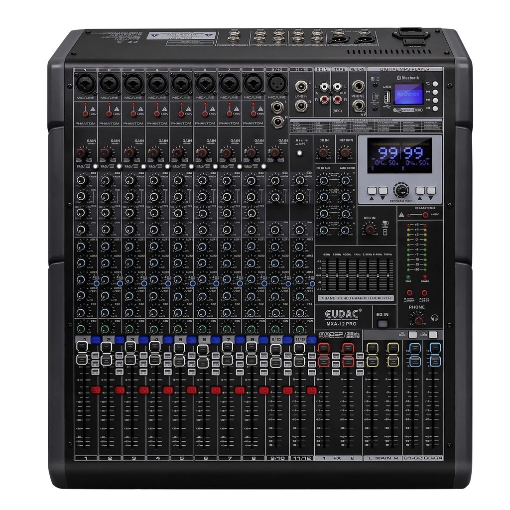 Mixer đến từ thương hiệu EUDAC được trang bị những công nghệ xử lý tín hiệu âm thanh hiện đại, mang đến chất lượng âm thanh trong trẻo, sống động. Với nhiều tính năng chuyên nghiệp như chỉnh sửa EQ, hiệu ứng, điều khiển kênh linh hoạt, mixer EUDAC đáp ứng mọi nhu cầu của người dùng, từ âm thanh gia đình đến âm thanh chuyên nghiệp. Trong số những sản phẩm mixer đó không thể không kể đến mixer EUDAC AUDIO MXA-12 Pro.